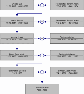 Stammbaum Der bisher ermittelte Stammbaum der Familie Schreck (väterlicherseits): Der bisher ermittelte Stammbaum der Familie Schreck (mütterlicherseits = Fleckenstein):