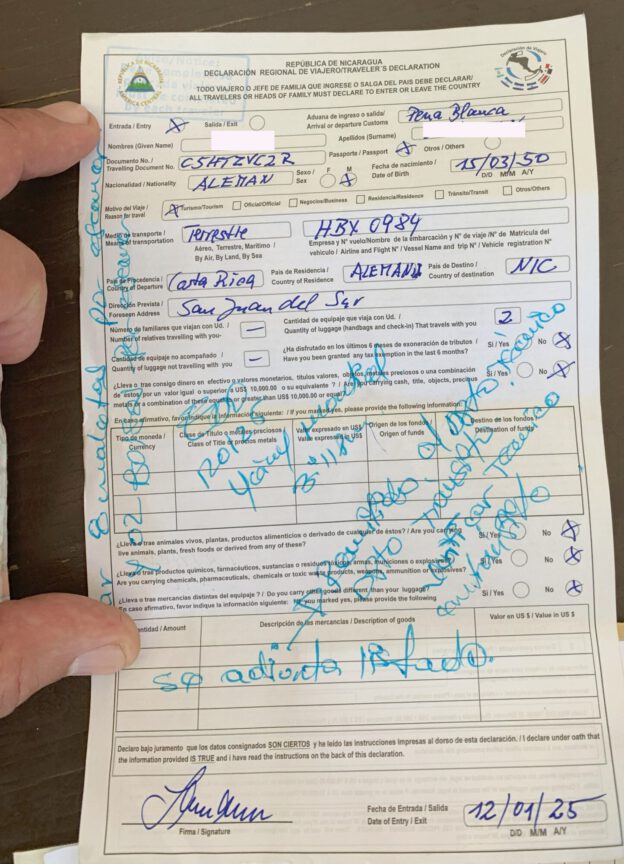 Zur Veranschaulichung habe ich hier ein Beispiel für den Grenzübergang zwischen Costa Rica und Nicaragua: