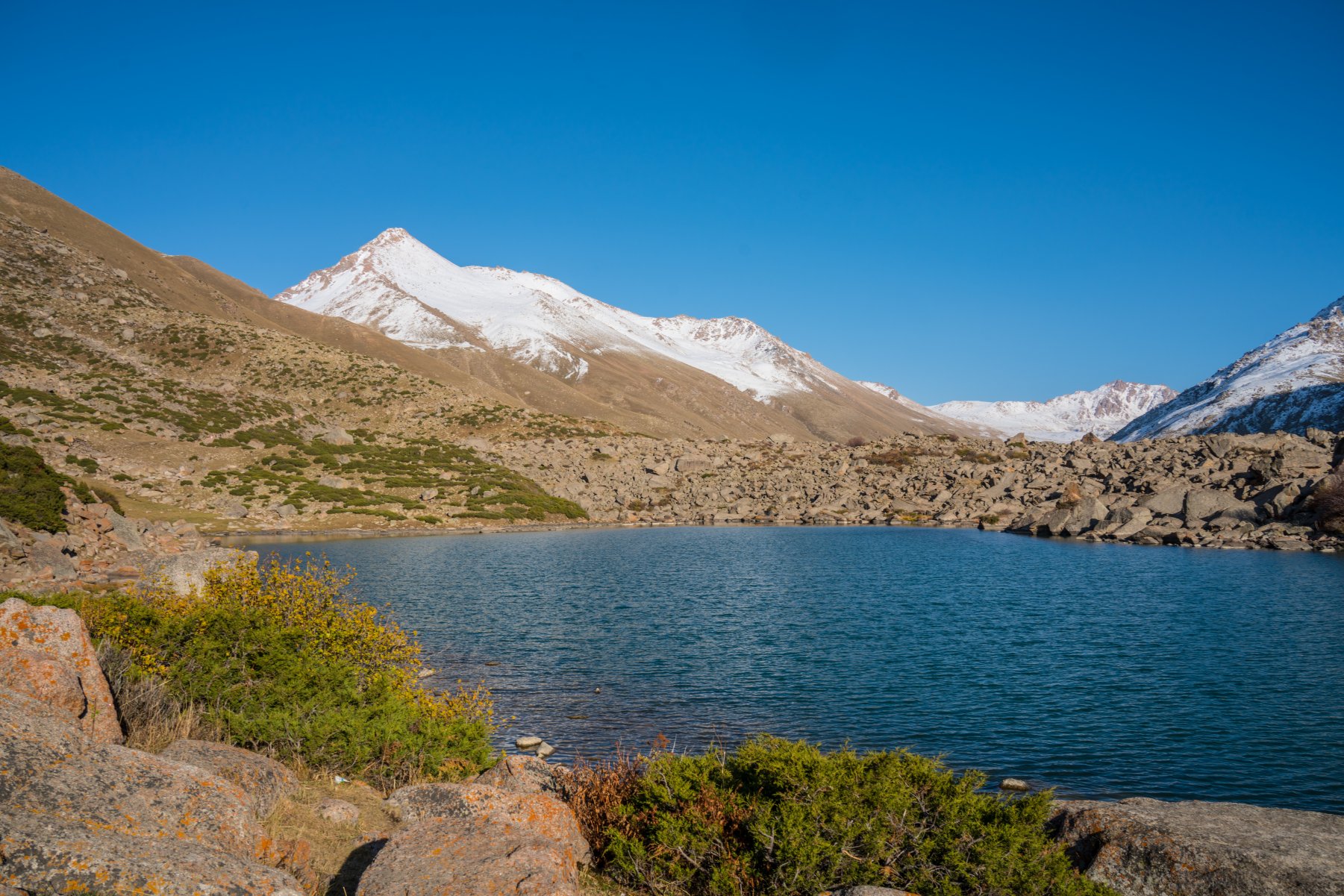 Wir starteten in Osh (Kirgisistan (Land #78), fuhren über die Grenze nach Usbekistan (Land #79) und besichtigten dort eine Seidenspinnerei und eine Töpferei, in der wir auch übernachteten. Nach einem wunderschönen Offroadausflug in den Gipsabbau fuhren wir nach Krokant, wo im Kahnspalast gerade ein internationales Fest vorbereitet wurde. In Taschkent nahmen wir uns viel Zeit für den Moscheeneubau und der Markthalle. Nach dem Grenzübergang nach Kasachstan (Land #80) fuhren wir nach Shymkent. Durch die kasachische Steppe und vorbei an einer Kalksteinhöhle ging der Weg nach Taras. Zurück in Kirgisistan überquerten wir den 3327m hohen Pass und fuhren zum See Toktogul. Entlang einem Gebirtsfluß führte uns der Weg ins Tal und weitere über Dschalalabat zurück nach Osh-